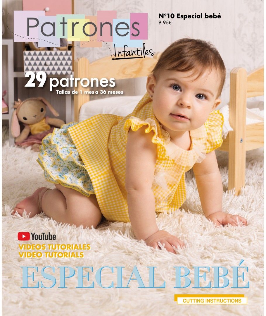 Revista de moda infantil Patrones Infantiles nº 10 Especial Bebé. Podrás encontrar patrones de costura para ropa de bebé y complementos. Siempre con instrucciones detalladas y vídeos de confección. Tallas de 1 a 36 meses.