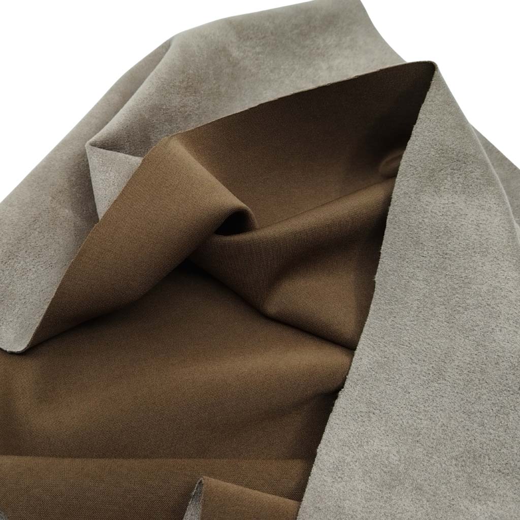 Tela antelina de neopreno en color liso beige. Es un tejido aterciopelado de antelina sobre base de neopreno que presenta cuerpo y elevada elasticidad. Perfecto para todo tipo de prendas.