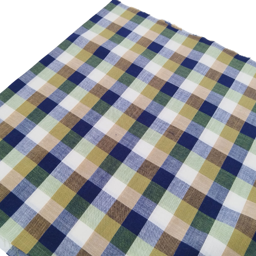 Tela de cuadro vichy multicolor 100% algodón en tono azul marino. Es una tela vichy muy suave y su cuadro mide 16 milímetros. Se puede coser todo tipo de ropa infantil y de bebé.