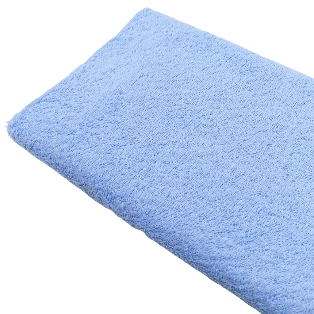 Tela de Rizo Azul Celeste 100% algodón, también llamada felpa o tela de toalla. Es el famoso rizo americano. Perfecto para baño de bebé e infantil, toallas, arrullos, cambiadores. Un tejido excepcional para el hogar.