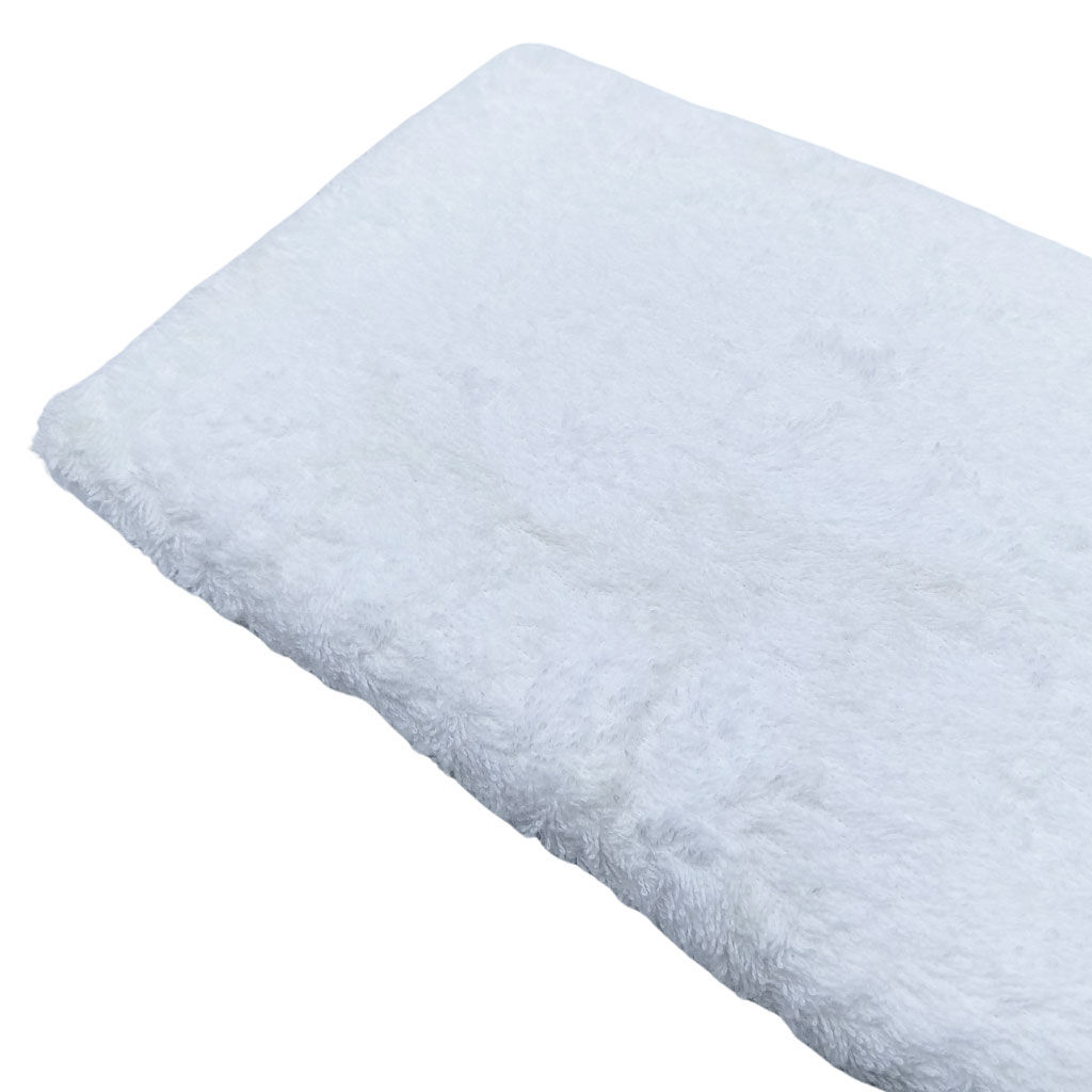 Tela de Rizo Blanco 100% algodón, también llamada felpa o tela de toalla. Es el famoso rizo americano. Perfecto para baño de bebé e infantil, toallas, arrullos, cambiadores. Un tejido excepcional para el hogar.
