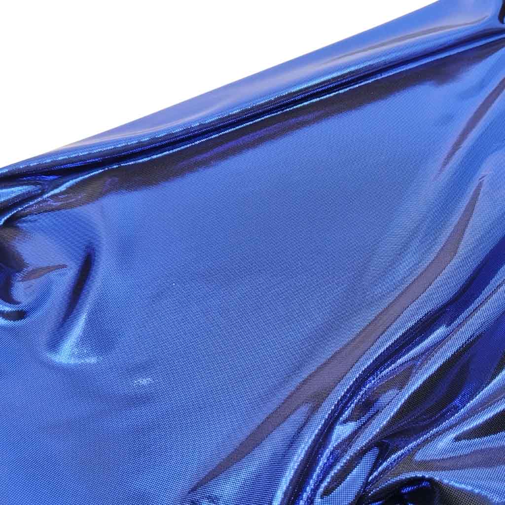 Tela laminada efecto metalizado en color azulón con ancho 115 centímetros. La base de este tejido laminado es un punto fino que presenta caída y vuelo. Esta tela lamé azulada es perfecta para coser disfraces, trajes para espectáculos y vestidos de carnaval.