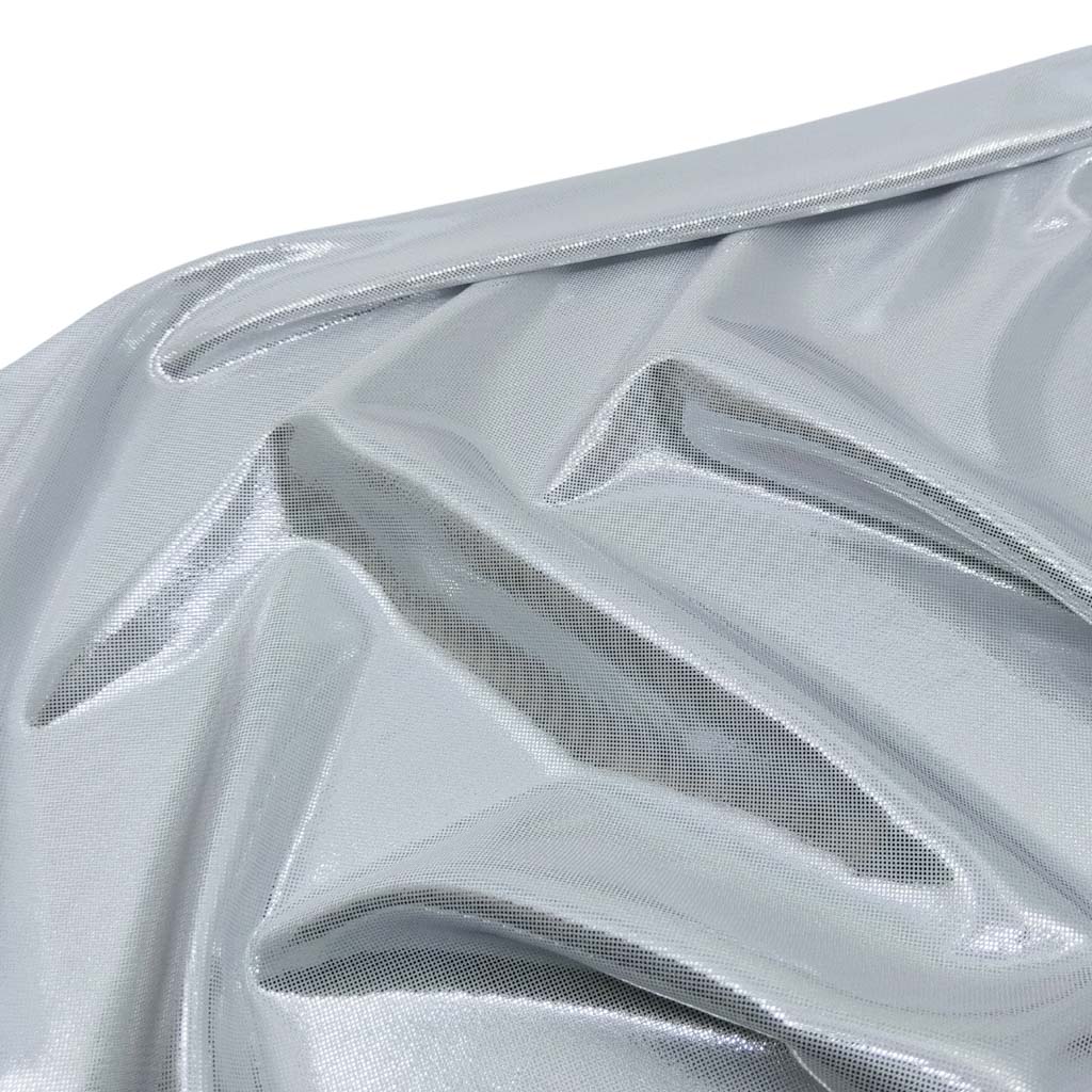 Tela laminada efecto metalizado en color blanco con ancho 115 centímetros. La base de este tejido laminado es un punto fino que presenta caída y vuelo. Esta tela lamé blanca es perfecta para coser disfraces, trajes para espectáculos y vestidos de carnaval.