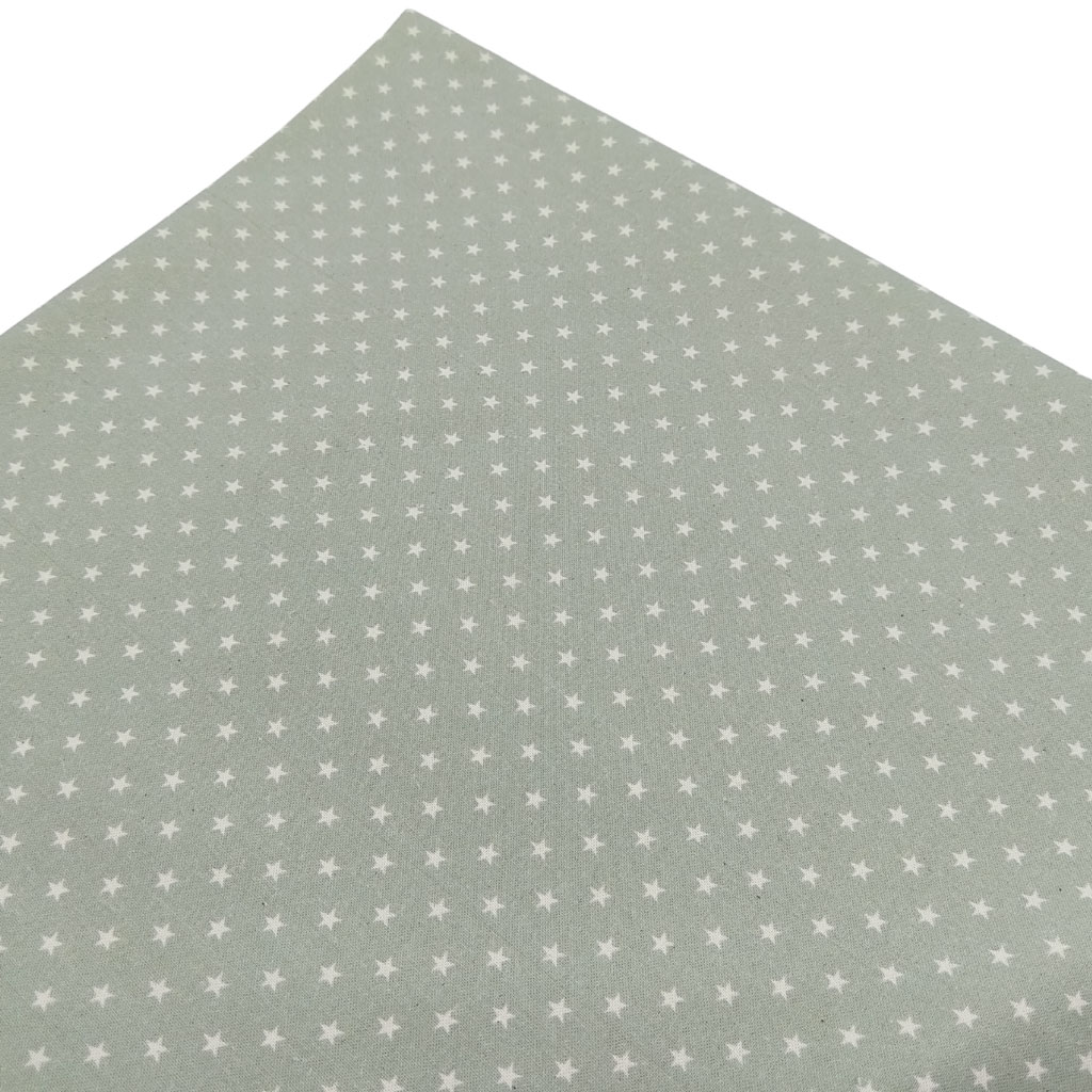 Tela popelín algodón con estampado de estrellas lino sobre fondo color verde jade. Este popelín de estrellas es de algodón 100%, presenta una textura suave y agradable, y dispone de certificado OEKO-TEX®. Colección Verona. Con este tipo de telas infantiles se pueden confeccionar prendas, complementos, cortinas, …