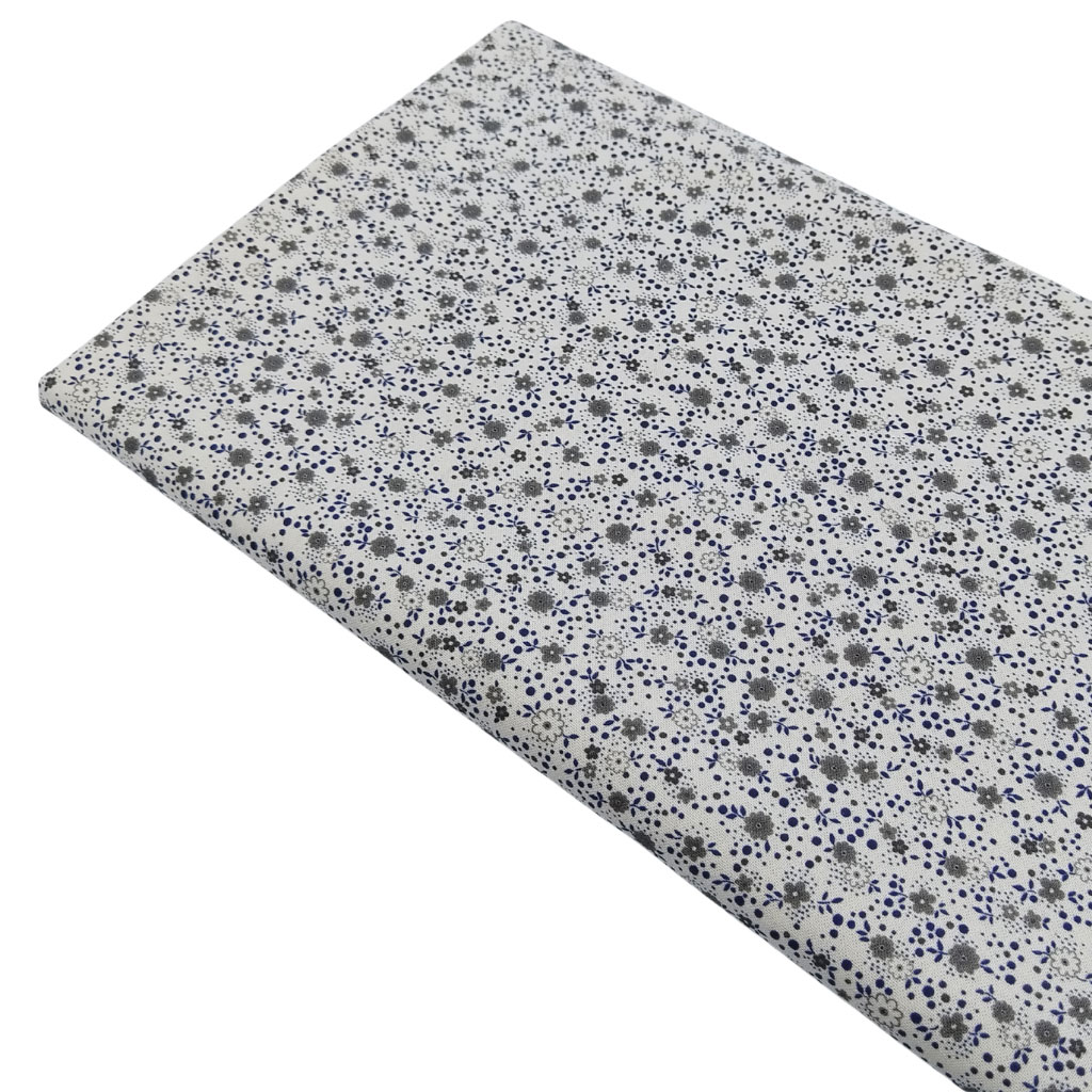 Tela popelín algodón con estampado de flores azul marino sobre fondo color lino. Este popelín de flores es de algodón 100%, presenta una textura suave y agradable, y dispone de certificado OEKO-TEX®. Colección Verona. Con este tipo de telas infantiles se pueden confeccionar prendas, complementos, cortinas, …