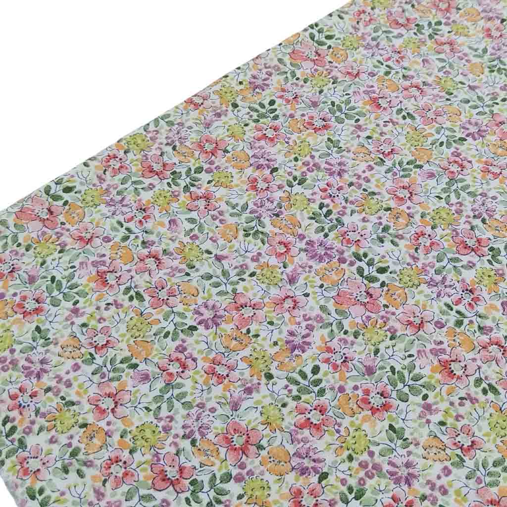 Tela popelín de algodón 100% con estampado de flores serie Campito de color coral.