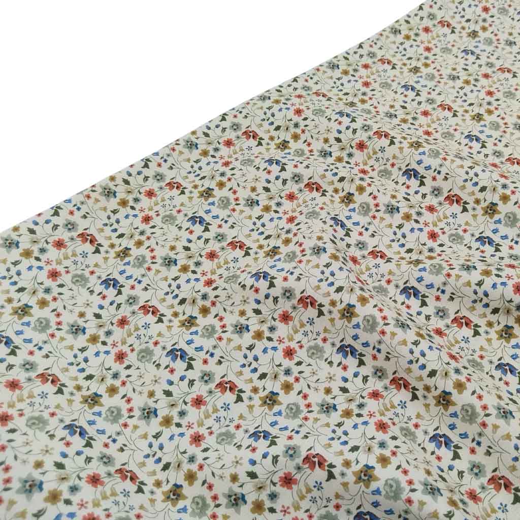 Tela popelín de algodón estampada con flores tamaño liberty en tono jade. Colección Field. Es un popelín fino, suave y libre de tóxicos, perfecto para confeccionar prendas y complementos infantiles y de bebé.
