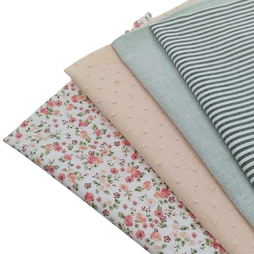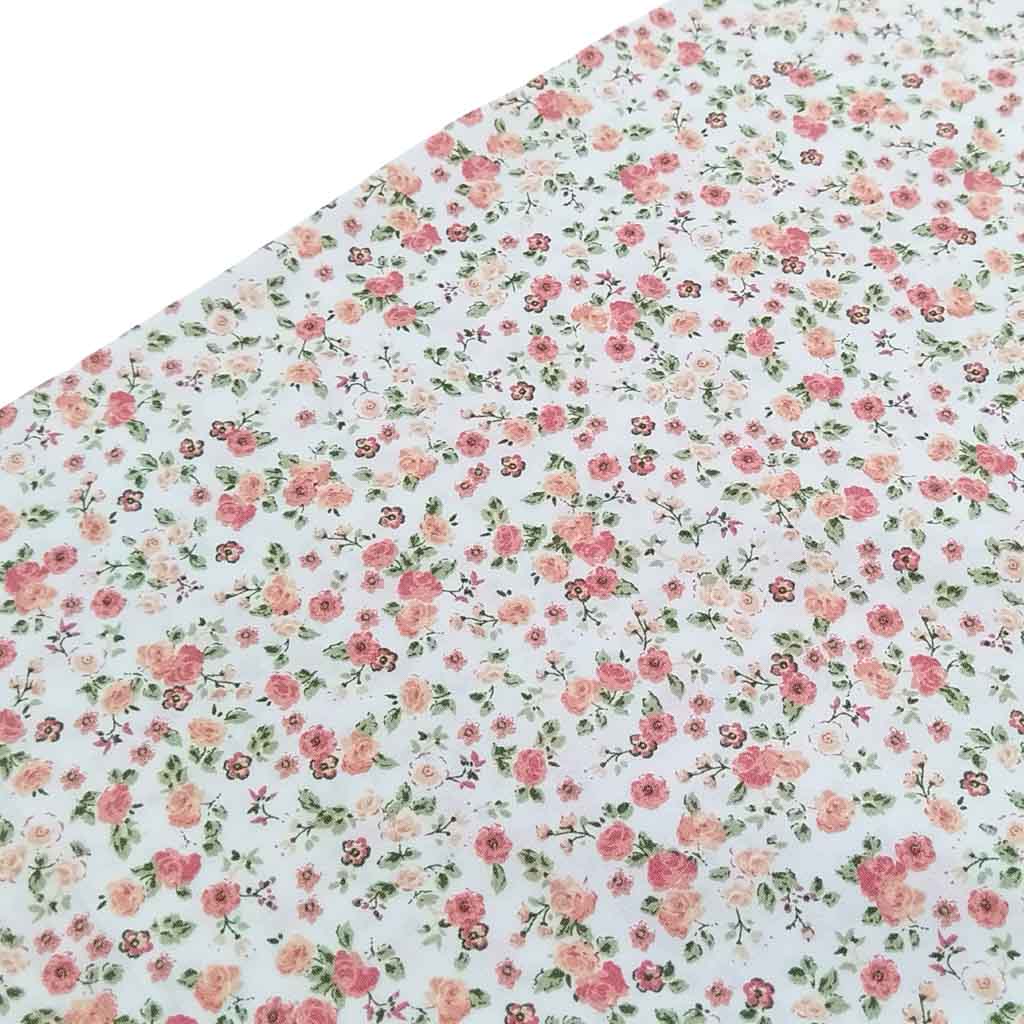 Tela popelín de algodón 100% con estampado de flores tipo liberty serie Rosita de color rosa empolvado.
