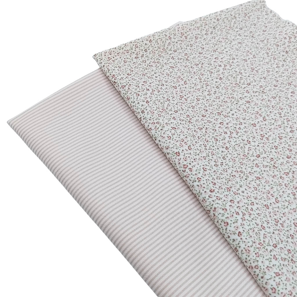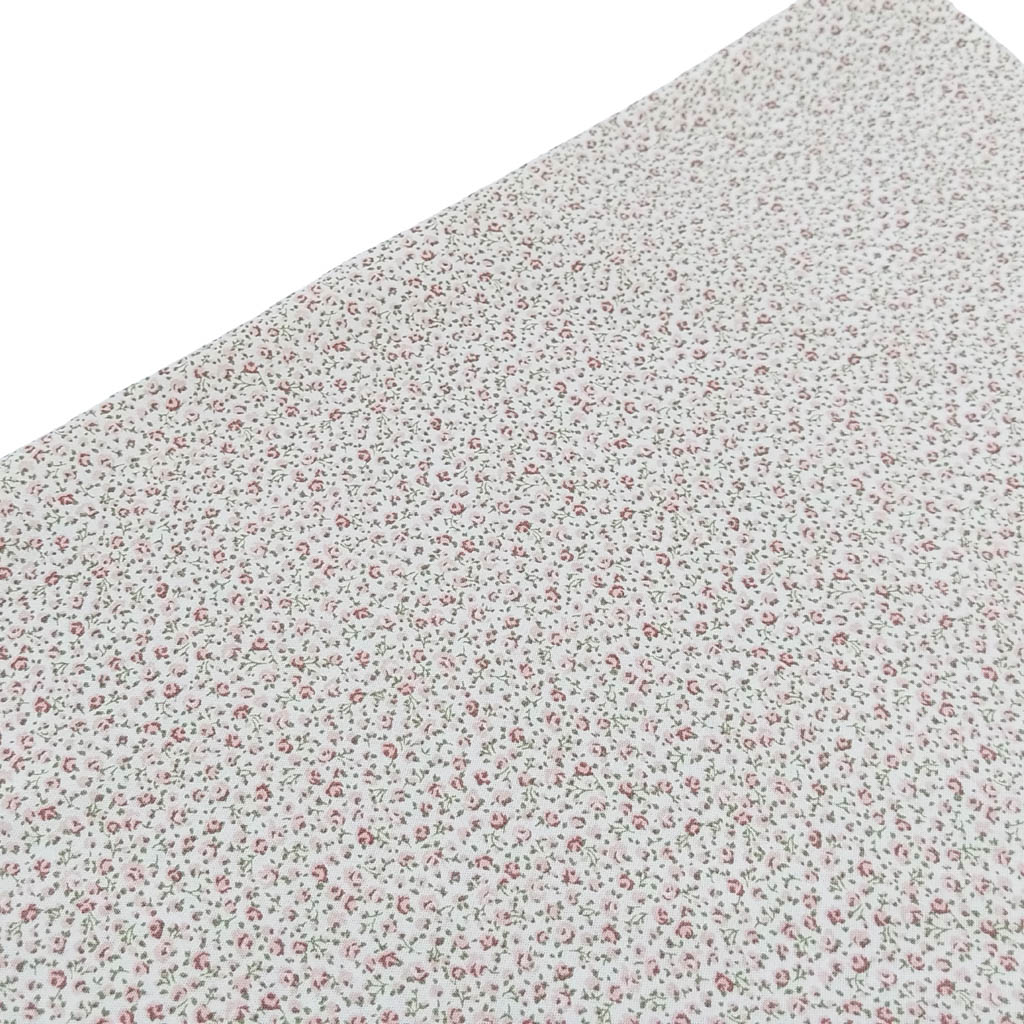 Tela popelín de algodón 100% con estampado de flores tipo liberty serie Cupido de tono rosa empolvado.