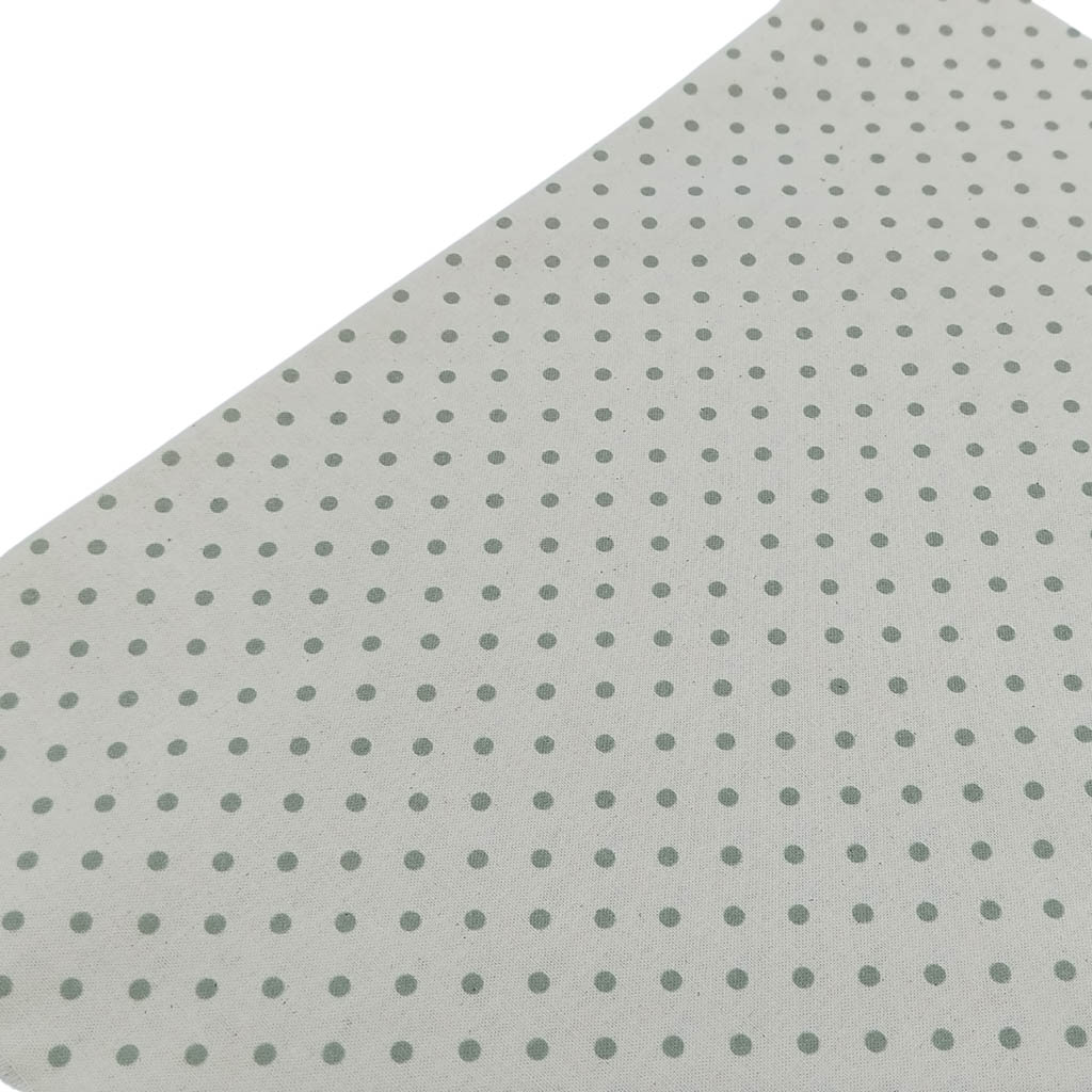 Tela popelín algodón con estampado de lunares verde jade sobre fondo color lino. Este popelín de lunares es de algodón 100%, presenta una textura suave y agradable, y dispone de certificado OEKO-TEX®. Colección Verona. Con este tipo de telas infantiles se pueden confeccionar prendas, complementos, cortinas, …