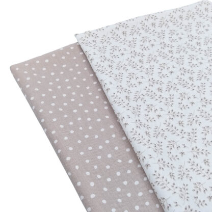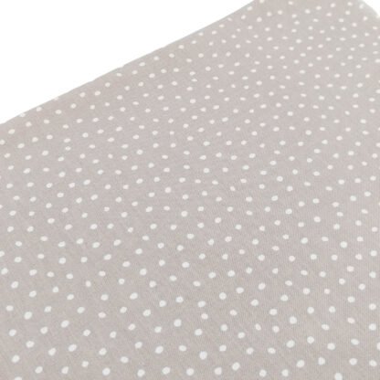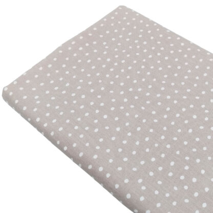 Tela viyela de algodón estampada con lunares sobre fondo beige. Esta viyela estampada de lunares es muy suave y agradable al tacto. Perfecta para confeccionar prendas infantiles.